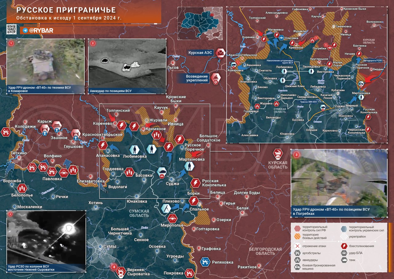 Обстановка в Курской области к исходу 1 сентября: встречные бои под Ольговкой и Мартыновкой