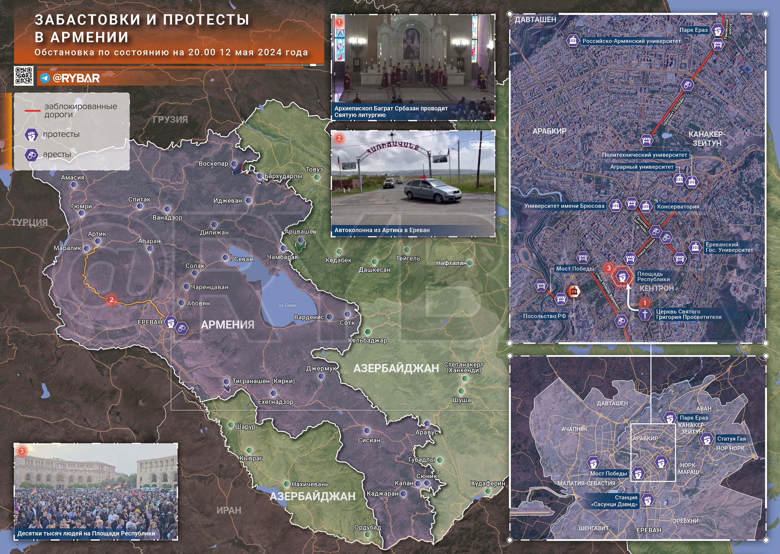 Забастовки и протесты в Армении: что известно к 21.00 12 мая 2024 года