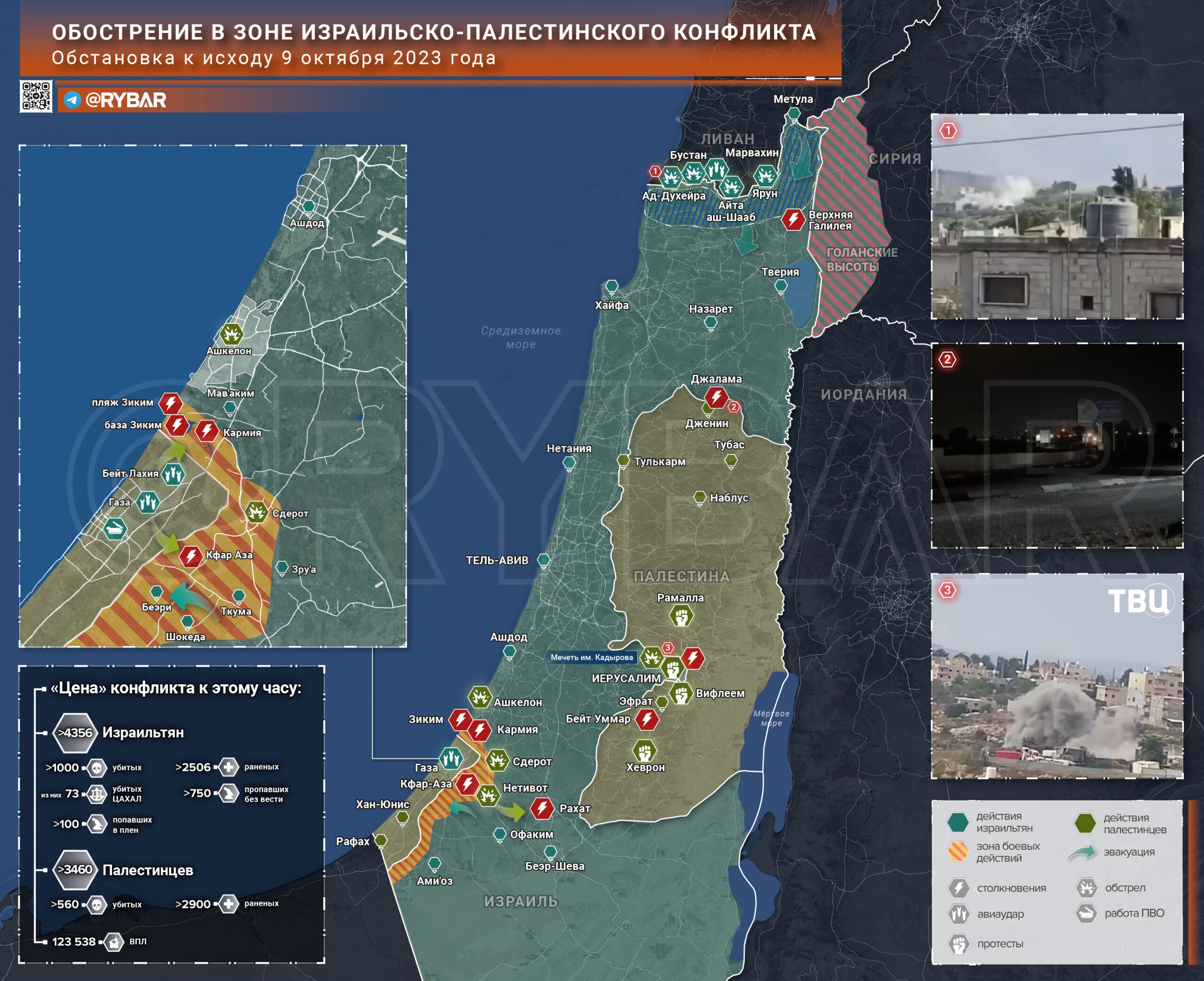 Обстановка в зоне израильско-палестинского конфликта за 9 октября 2023 года