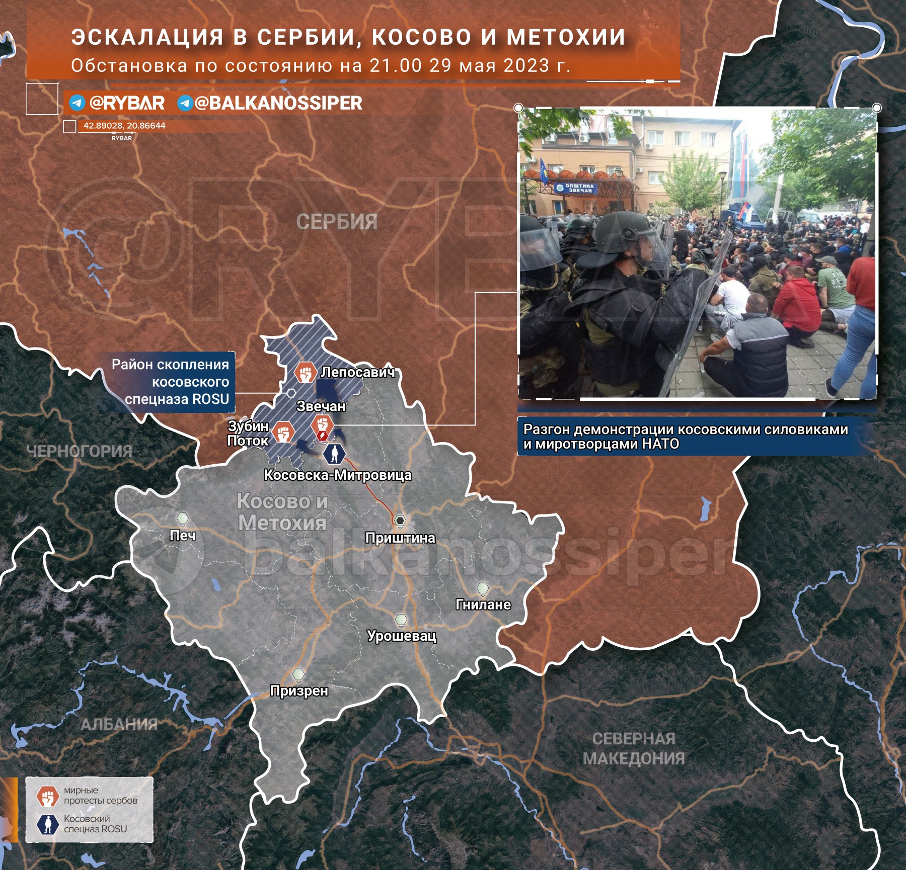 Эскалация в Сербии, Косово и Метохии 29 мая 2023 года