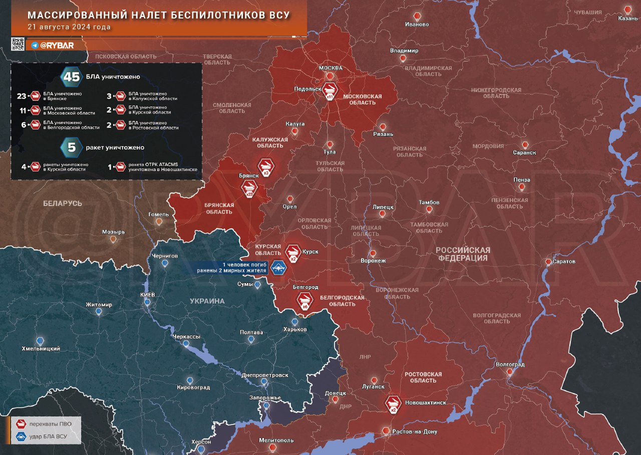 Массированный налёт беспилотников ВСУ на Брянскую и Московскую области
