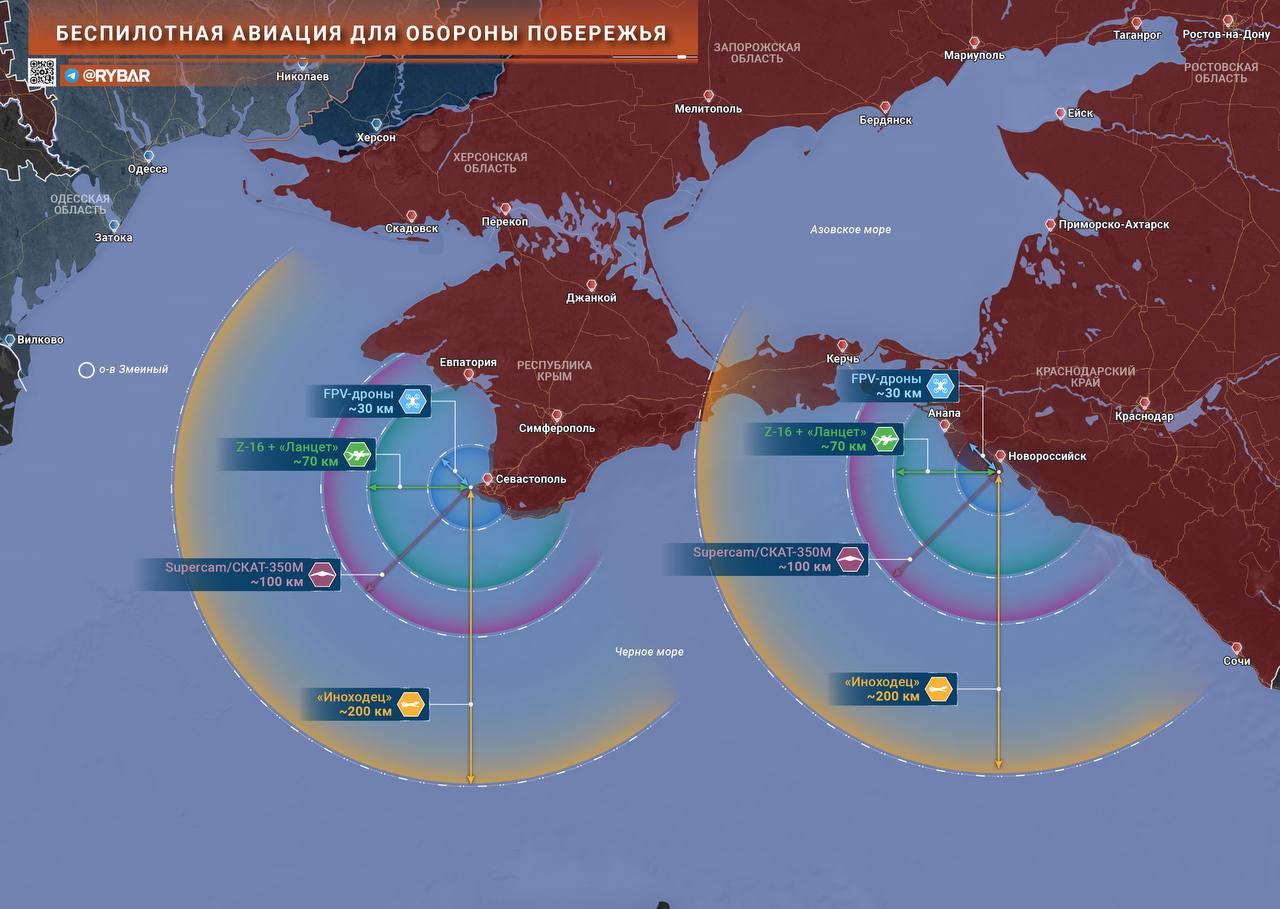 На более дальних дистанциях может работать давно зарекомендовавшая себя связка из БЛА-разведчика от ZALA и барражирующего боеприпаса «Ланцет». В отличие от передовой, где на них охотятся перехватчики и РЛС RADA, над Черным морем ничего подобного нет.
