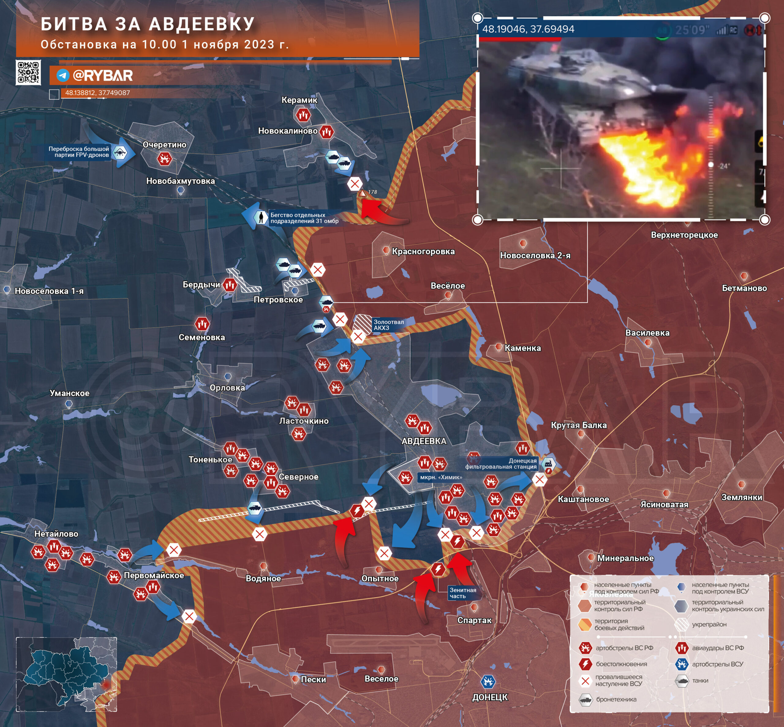 Российские войска продолжают выполнение задачи по охвату Авдеевского укрепрайона и уничтожению подкреплений, снятых с других участков фронта. Если к 21 октября удалось выполнить задачу по расширению плацдарма к северу от города с занятием золоотвала Авдеевского коксохимического завода, к 26 октября — расширить южные «клещи» и наступательную операцию на микрорайон «Химик», то задача текущей недели — это удержать занятые рубежи и не дать противнику восстановить тактическое положение.