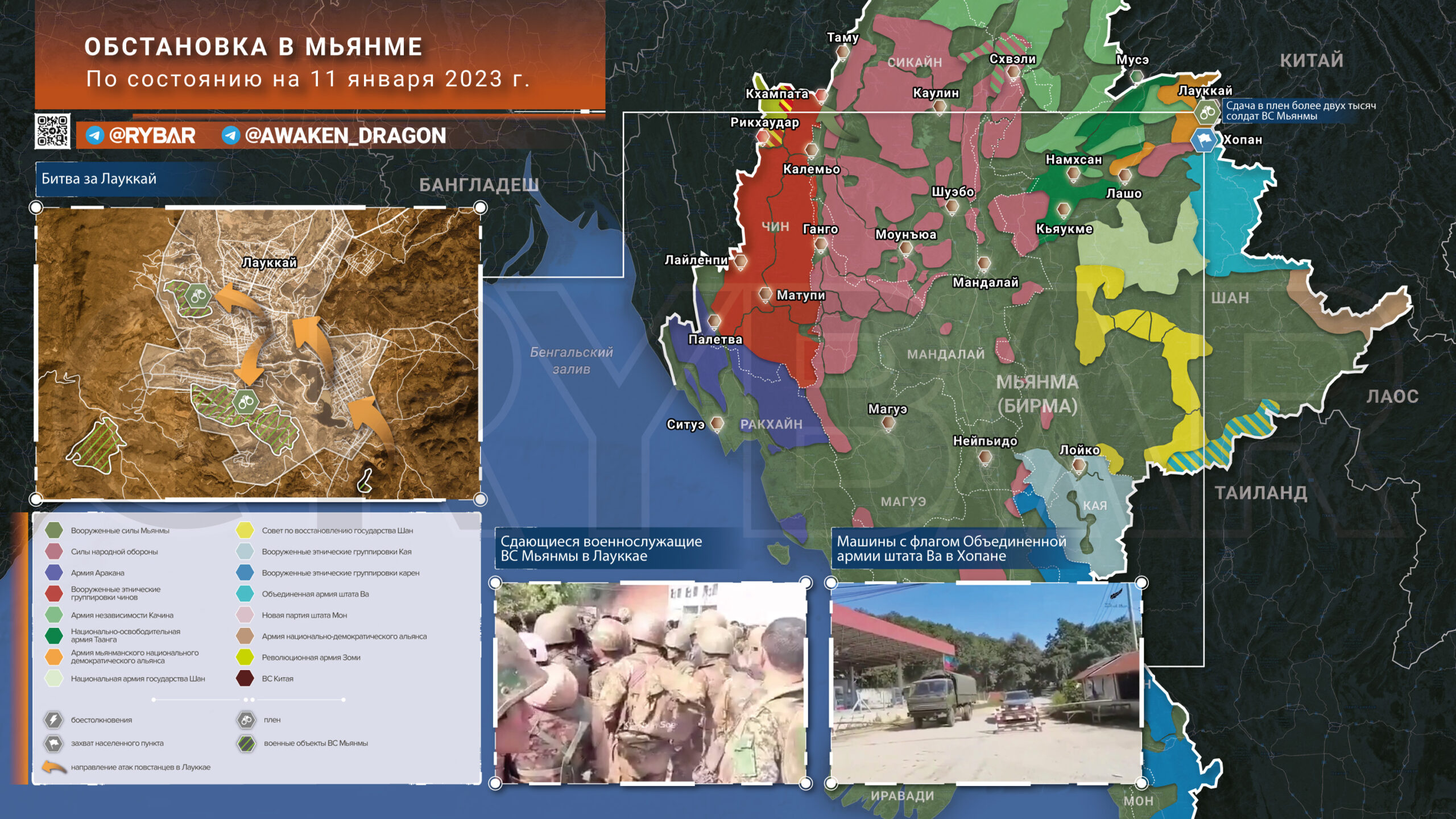 В Мьянме в 2024 году бои продолжились в нескольких частях страны. Самым важным событием стал захват повстанцами административного центра региона Кокан — Лауккая, бои за который шли с конца декабря. Событие действительно знаковое для незаконных формирований: именно с этого города в 2009 году военнослужащие ВС Мьянмы изгнали этническую группировку «Армия мьянманского национально-демократического альянса» (АМНДА).