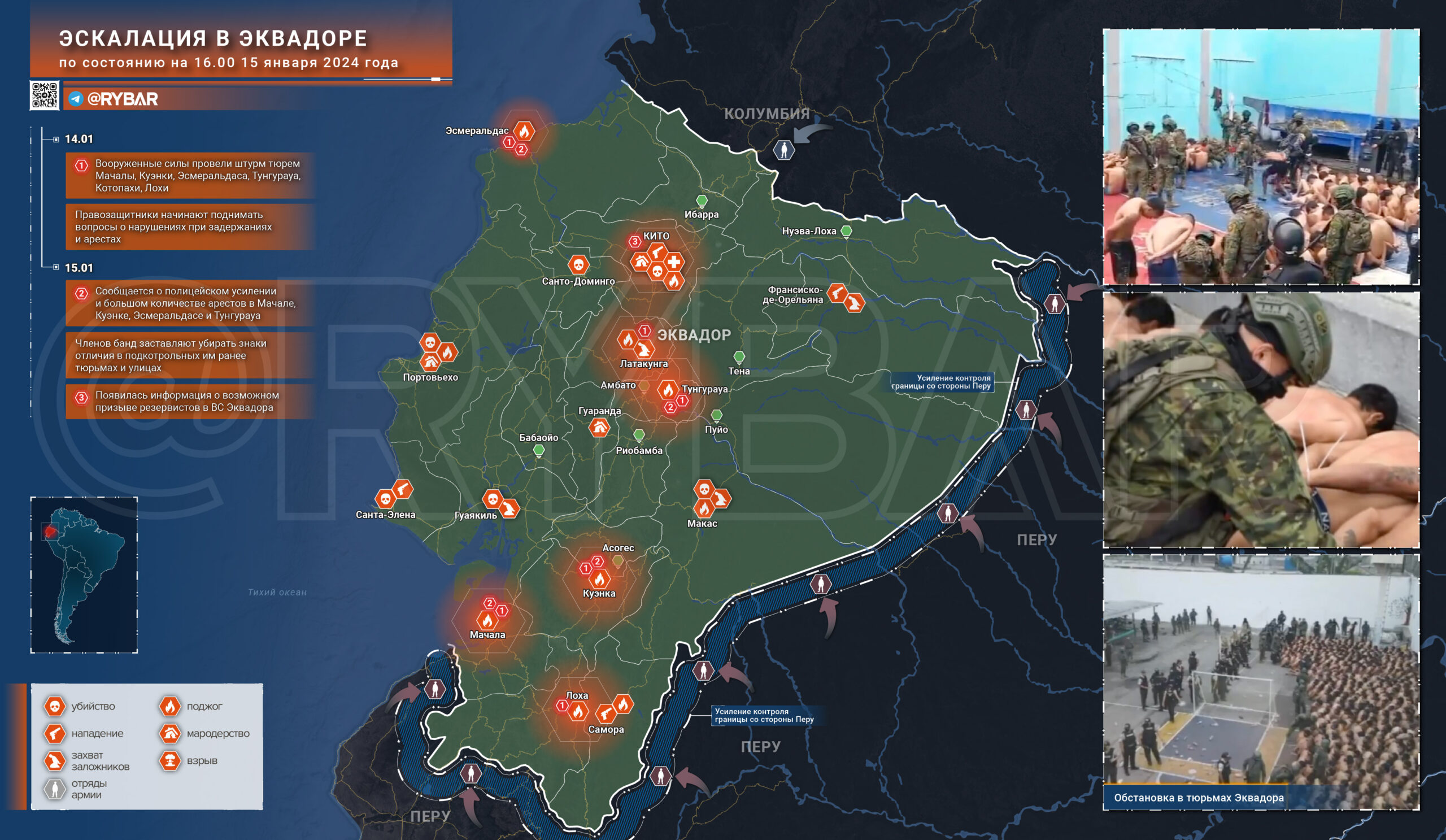 За прошедшие сутки в крупнейших тюрьмах страны — в Тунгурауа, Куэнке, Мачале, Лохе, Латакунге, Эсмеральдасе — прошли штурмы, по итогам которых национальная полиция и вооруженные силы отчитались о взятии пенитенциарных учреждений под контроль. Несмотря на то, что власти Эквадора уже начали рапортовать об успехах в освобождении всех заложников, спецоперация продолжалась еще более чем сутки. По некоторым данным, удалось освободить более сорока человек.