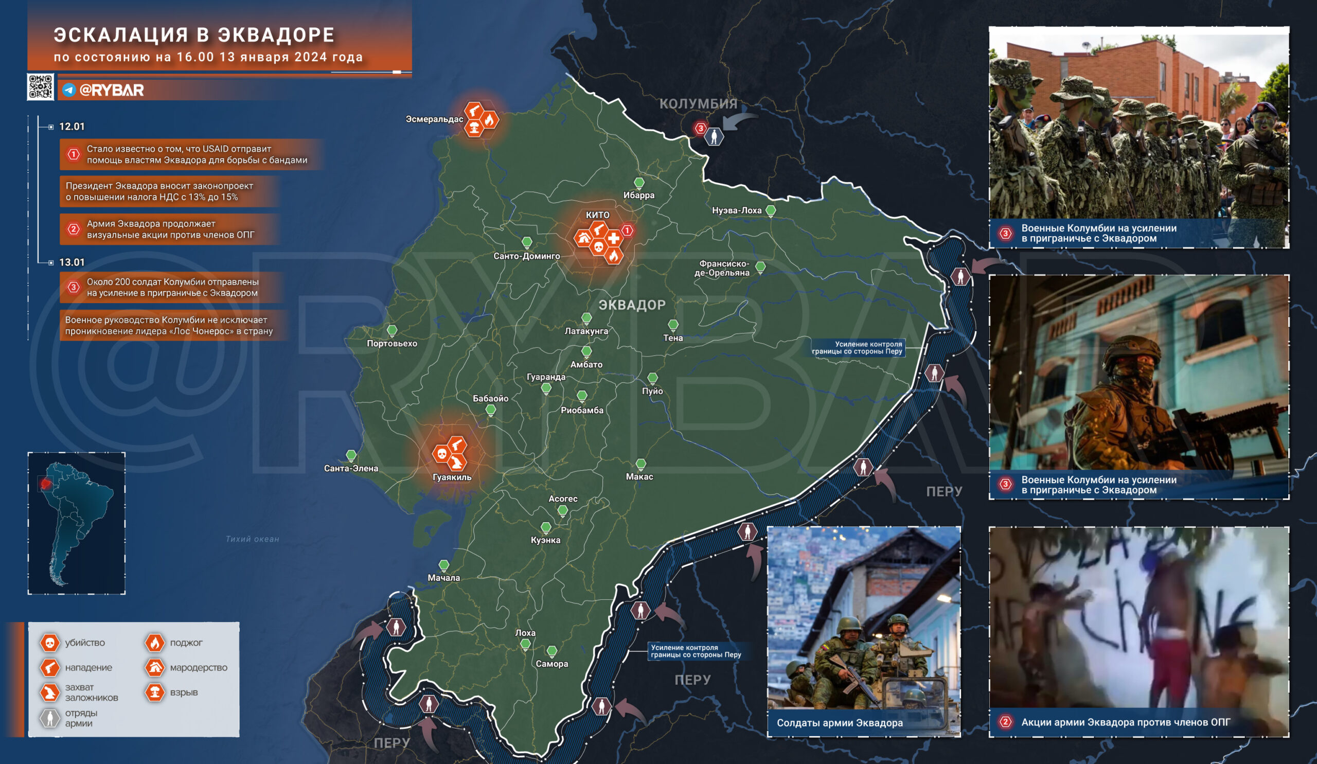 Дополнительно стало известно, что Агентство США по международному развитию (USAID) выделит властям Эквадора дополнительные средства на обеспечение безопасности. Будут это денежные транши или конкретные материально-технические поставки для нужд армии или полиции — пока непонятно.