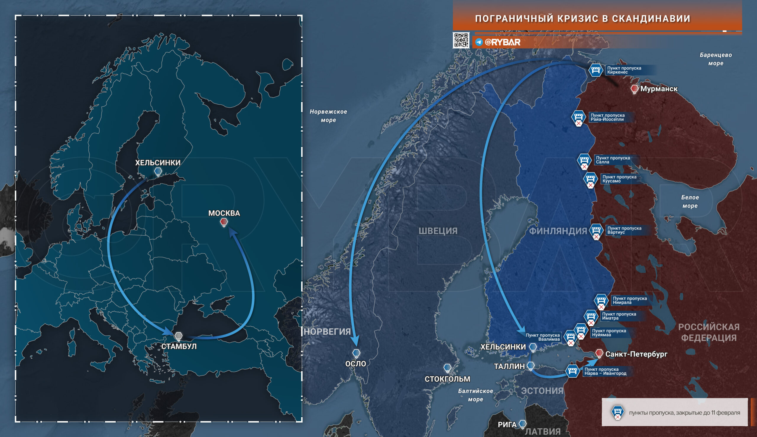 Конечно, остаётся путь через Норвегию. Там обстановка несколько иная. Несмотря на то, что норвежцы уже давно в НАТО, их политика разительно отличается от соседей. Конечно, учения проводятся, угроза из России упоминается, и о борьбе в Арктике они не забывают, но граница на севере Кольского полуострова остается открытой. Благодаря этому желающие могут попасть Финляндию из Киркенеса транзитом через Осло. Правда, обратный путь в Россию возможен только через Стамбул из-за юридических нюансов.