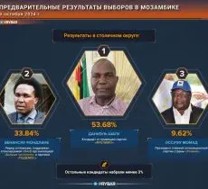 9 октября в Мозамбике прошли всеобщие выборы. По предварительным результатам победа досталась правящей с 1975 года партией ФРЕЛИМО. Инфографика в...