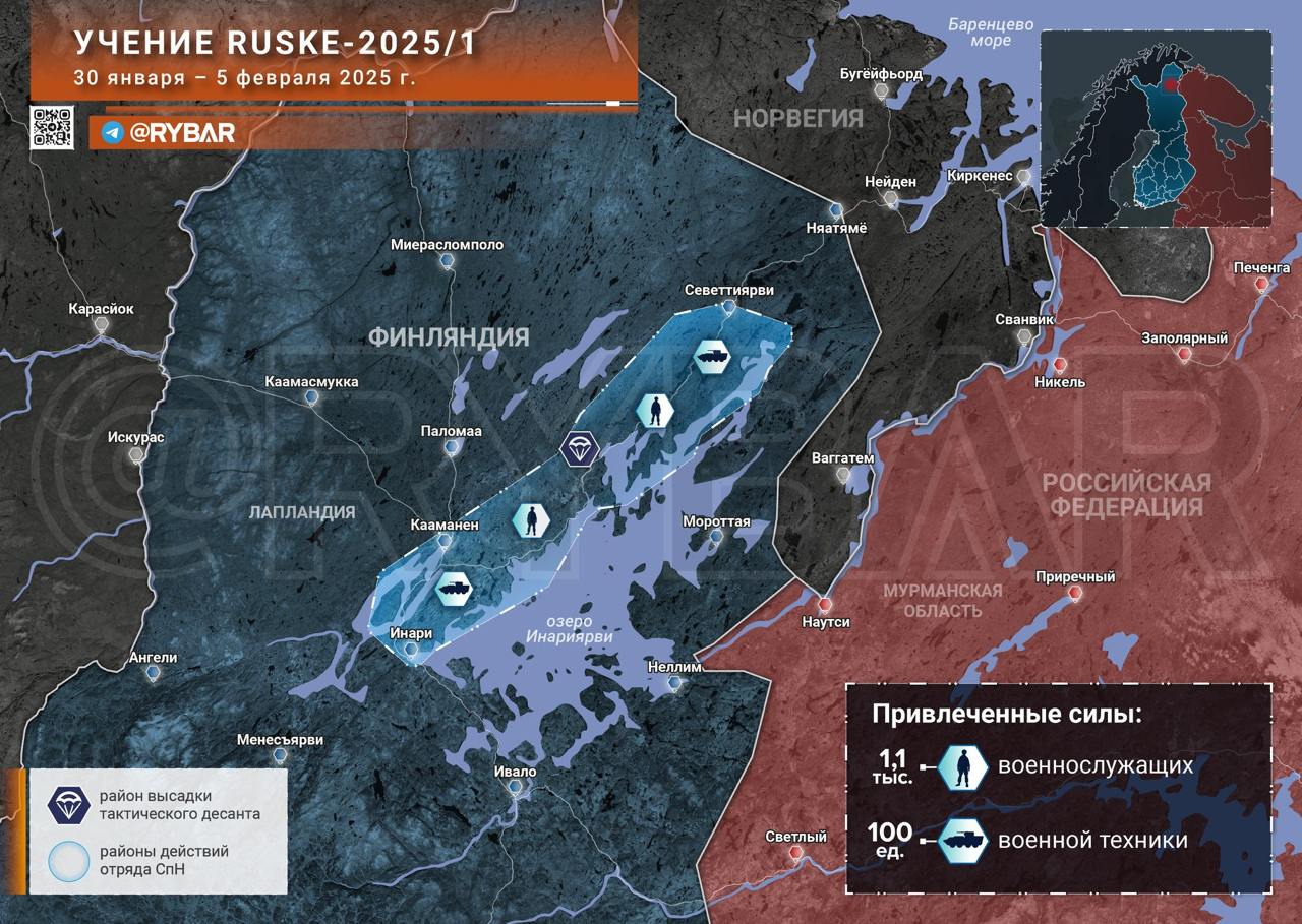 На севере Финляндии 30 января началось очень любопытное учение Ruske-2025/1, которое продлится до 5 февраля. Интересно то, что информации о нем практически нет в открытых источниках, то есть финны пока решили не рассказывать о нем общественности.
