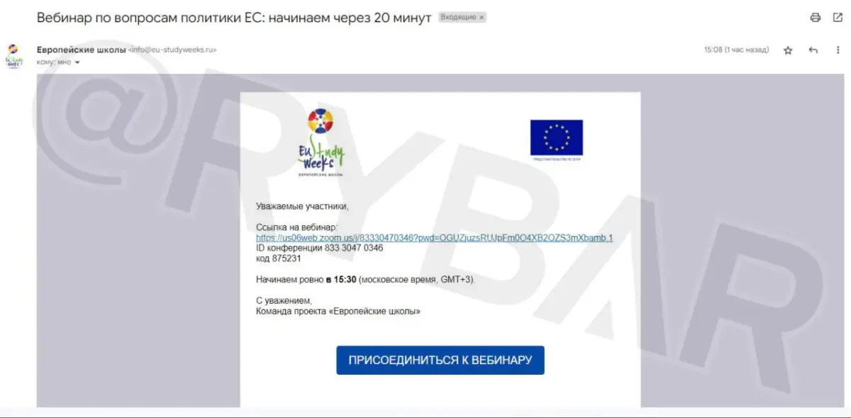 10 октября состоялся вебинар по теме взаимоотношений ЕС и России, организованного европейскими структурами при участии иностранных агентов. Целевой аудиторией мероприятия стали студенты российских вузов, а именно выпускники проекта «Еврошколы».