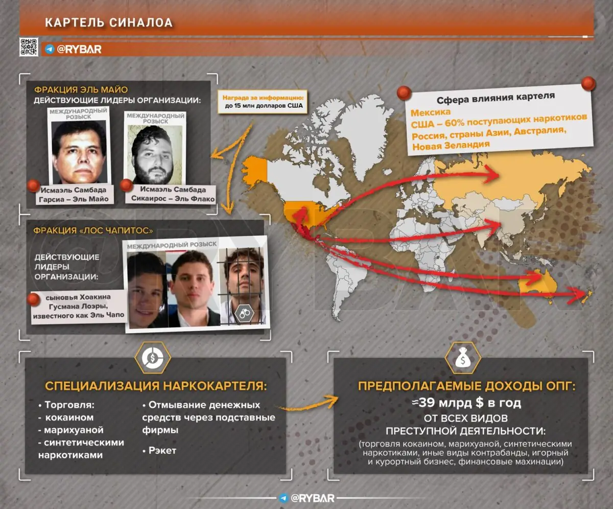 После распада картеля Гвадалахары и передела сфер влияния ребятам из Синалоа все же удалось сохранить за собой контроль над существенной частью логистических объектов и перехватить «кураторство» над большей частью наркопотока, поступающего в США. На международных направлениях — в Европе, Австралии и странах Азии — картель также работает, однако в медийном отношении эта история не так раскручена, как у тех же «Нового поколения Халиско» (CJNG).