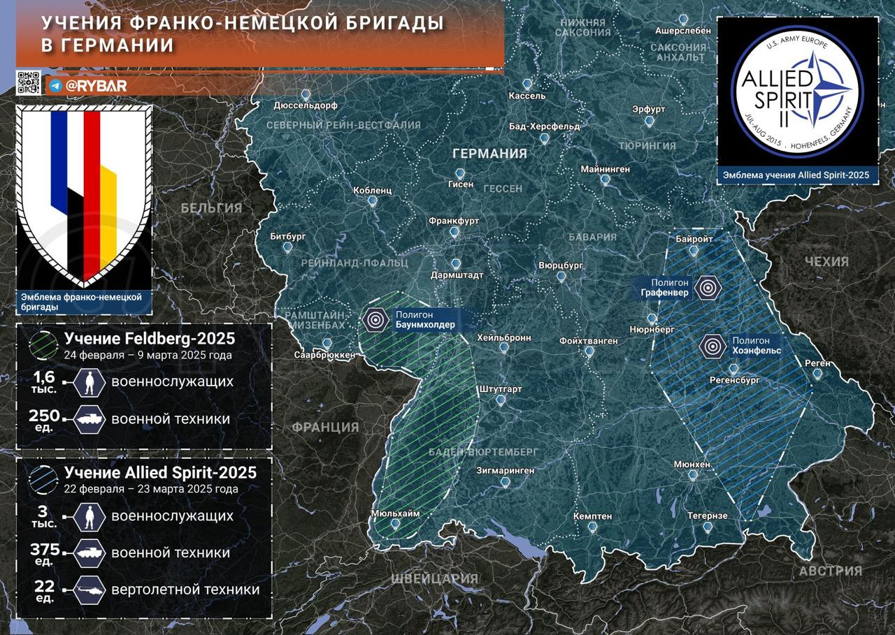 С 24 февраля по 9 марта на военном полигоне «Баумхолдер» проходит учение Feldberg-2025 с привлечением французских подразделений для проверки готовности сил обеих стран к совместному выполнению задач.