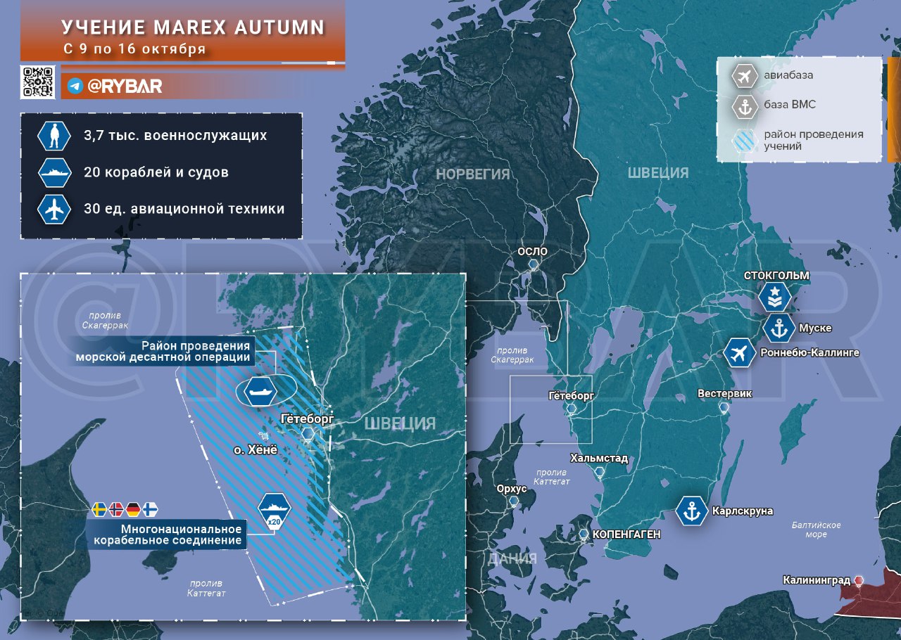 9 октября в проливах Каттегат и Скагеррак, соединяющих Балтийское с Северным, стартовало четырехстороннее учение Marex Autumn, в котором принимают участие три страны Скандинавии и Германия.