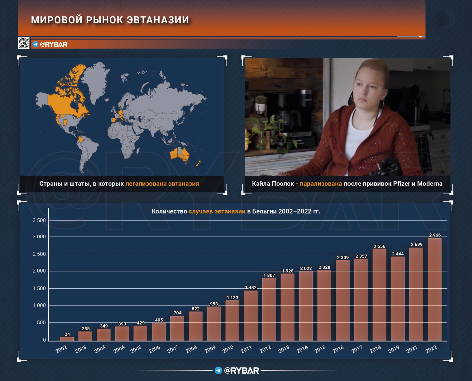 Наиболее наглядно рост рынка эвтаназии можно проследить в странах ЕС. Например, в Бельгии с 2002 по 2022 рынок вырос в 123 раза (!). И эта динамика сохраняется.