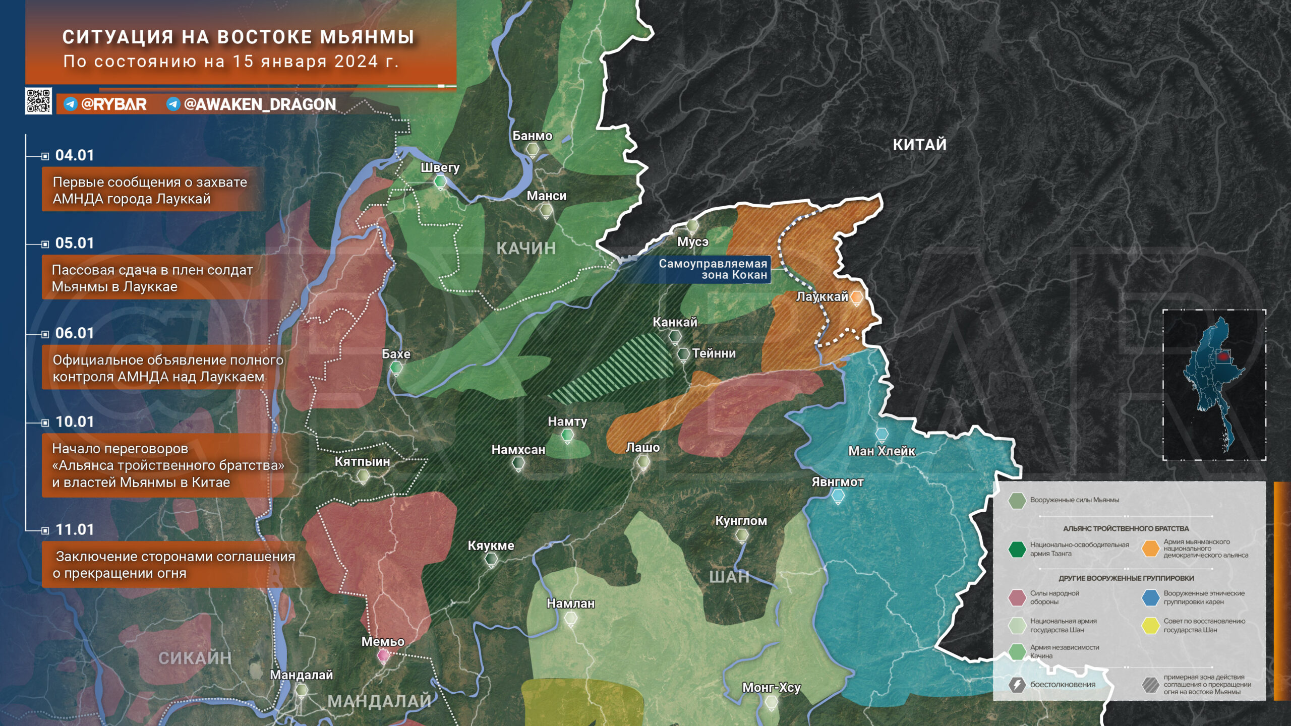 На прошлой неделе стало известно, что «Альянс тройственного братства», являющийся движущей силой «Операции 1027» на севере штата Шан в Мьянме, и военные власти страны заключили соглашение о прекращении огня. Это стало результатом переговоров, проходивших с 10 по 11 января при активном посредничестве Китая.