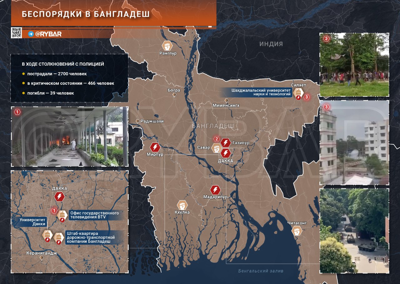 Удивительно, но практически незамеченными для большинства СМИ проходят массовые протесты в Бангладеш. Только за прошедшие двое суток от столкновений демонстрантов с полицией пострадали 2700 человек, из них насчитывается 39 погибших, а 466 находятся в тяжелом и критическом состоянии.