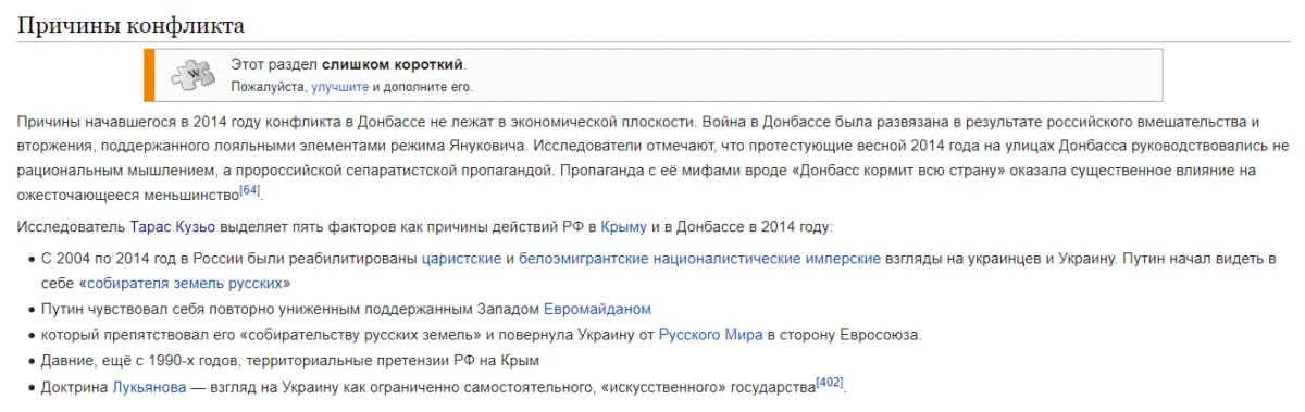 Причины конфликта на Донбассе по версии российской Википедии