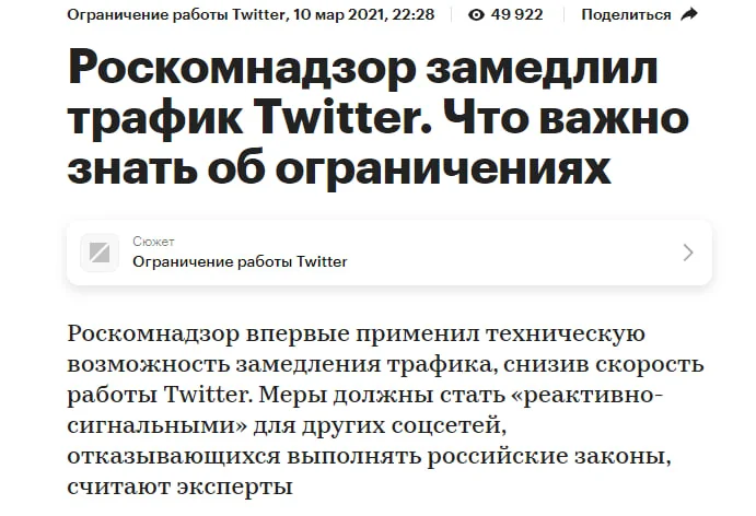 Ограничение работы Twitter в России в 2021 году