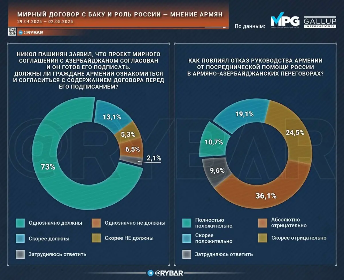В марте власти Армении заявили, что согласовали мирный договор с Азербайджаном, но не представляют его текст общественности. В опросе Gallup подавляющее большинство опрошенных (86,1%) считает, что армянские граждане должны ознакомиться с его содержанием.