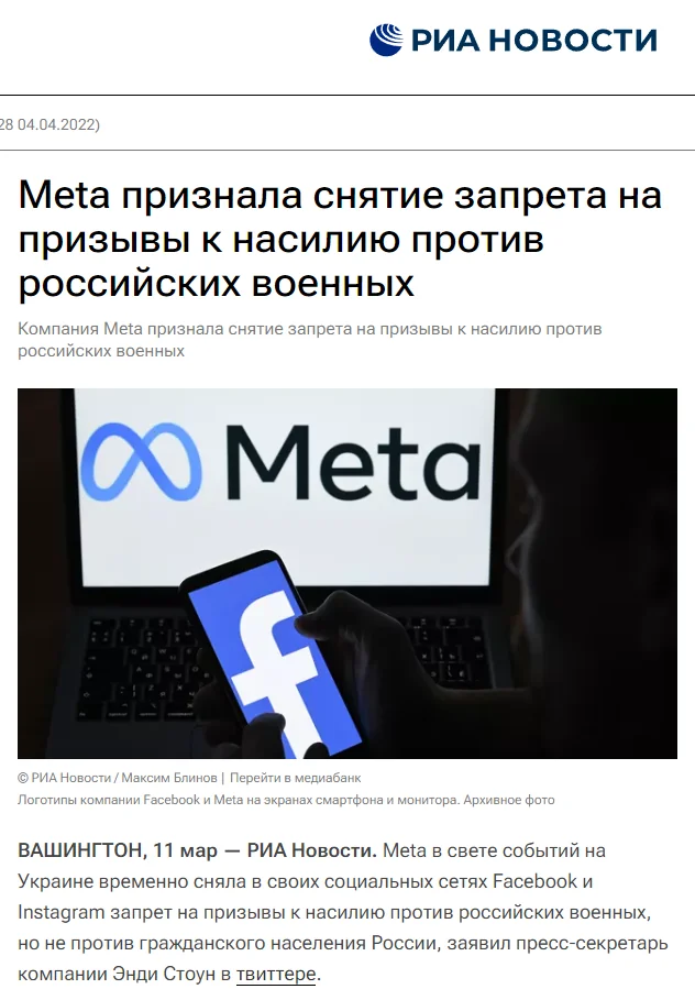 В случае с WhatsApp не стоит забывать, что он принадлежит корпорации Meta, куда входят также Facebook и Instagram. На последних площадках в первый месяц СВО активно распространялась украинская пропаганда, а руководство Meta и вовсе сняла запрет на призывы убивать российских военнослужащих (хотя такие высказывания в отношении любой национальности или социальной группы запрещены правилами платформы).