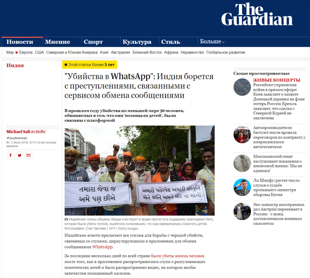 Статья Guardian об убийствах в Индии после серии провокаций в WhatsApp (переведено Яндекс переводчиком)