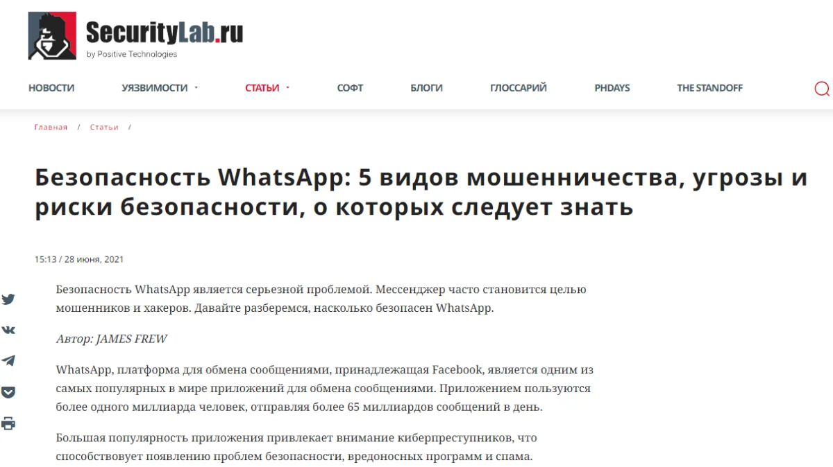 Есть вопросы и к общей безопасности мессенджера — создатель Telegram Павел Дуров считает, что WhatsApp крайне уязвим. Конечно, в этом случае он лицо заинтересованное, но об этом говорят многие другие специалисты. Хотя, справедливости ради, именно проблема вбросов и «фейков» стоит остро для всех социальных сетей и мессенджеров, включая сам Telegram.